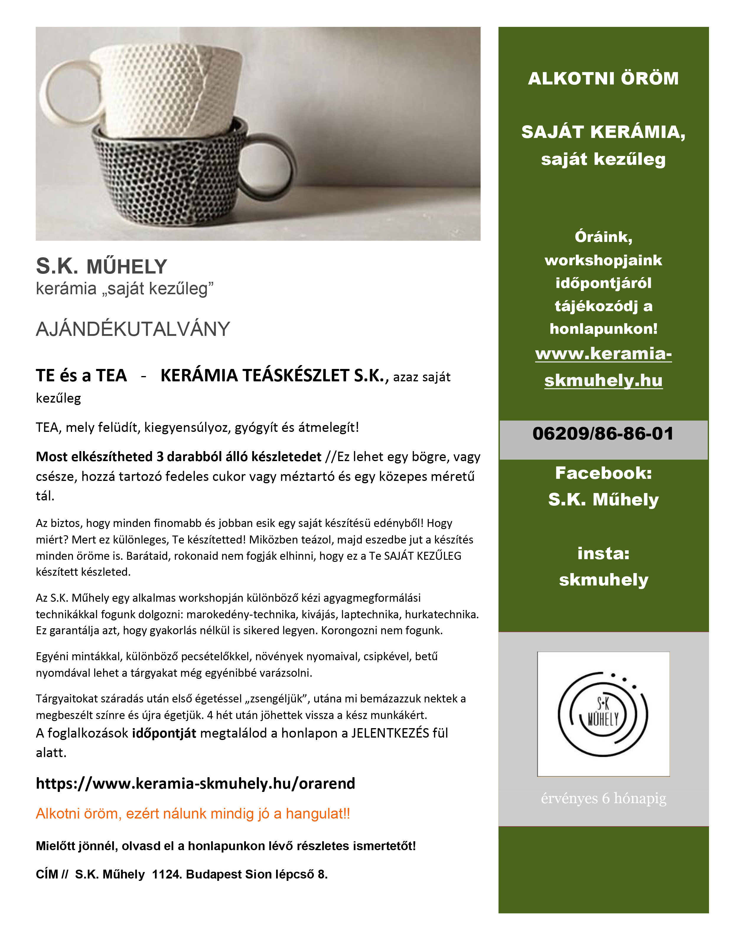TE és a TEA - KERÁMIA TEÁSKÉSZLET saját kezűleg - Ajándékutalvány